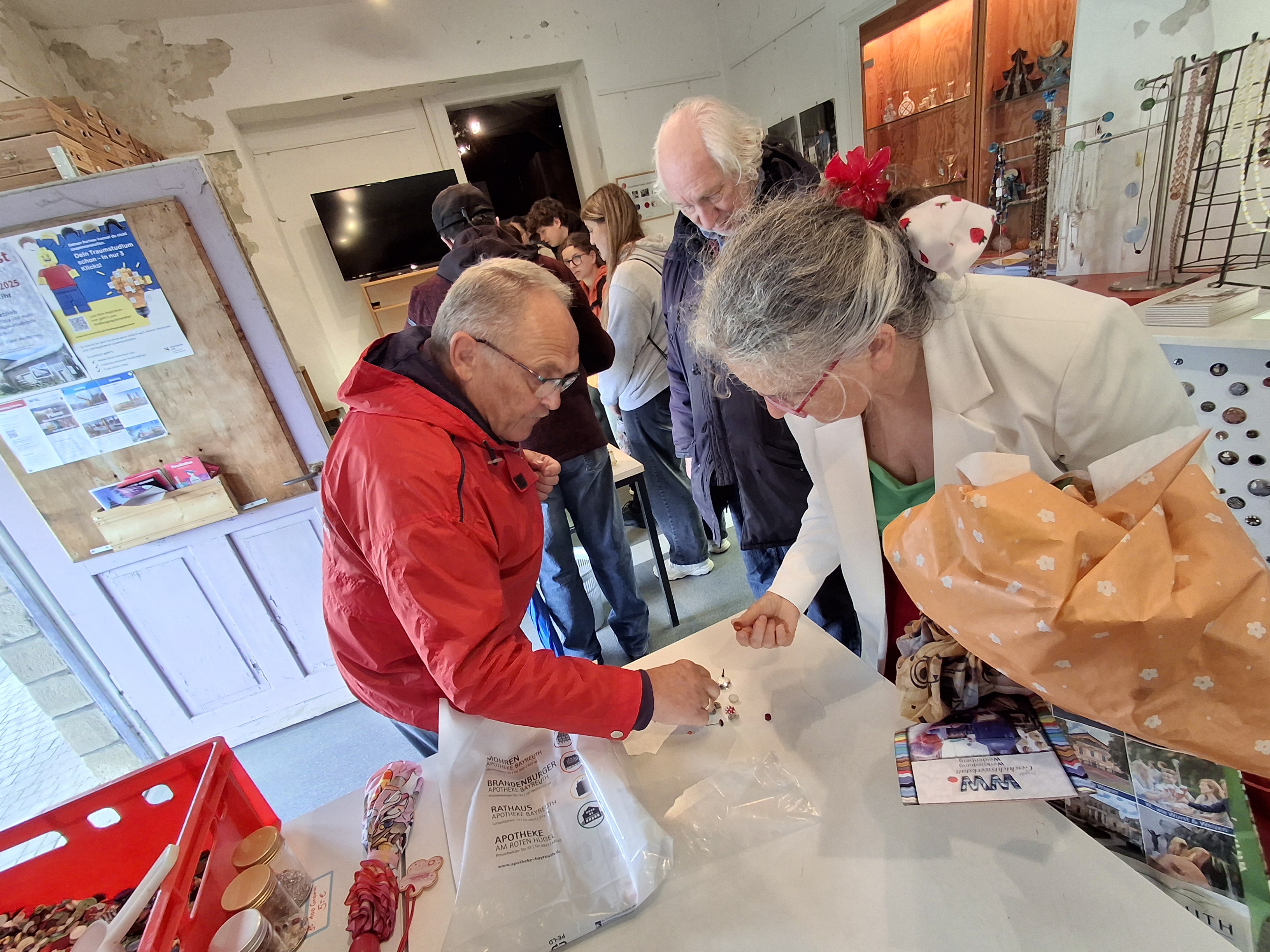 Danach ging es vom Obermarkt aus dem idyllisch gelegenen Rathaus hinaus und hinunter zum Untermarkt über die neue Mitte zum ehemaligen Bahnhof, wo das Glasknopfmuseum derzeit untergebracht ist. Begleitet wurden wir von der Gemeindearchivarin Stefanie Reckziegel, die uns freundlicherweise erneut mit Rat und Tat zur Seite stand.